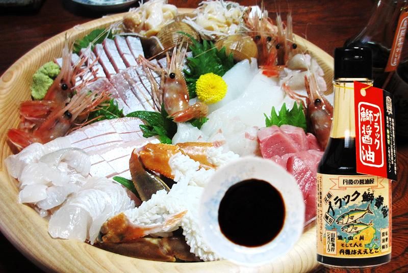 コテコテの脂がのった青物魚にもよく絡み合う醤油はないものかと、丹後の釣り好きのわがままから生まれた刺身醤油です。